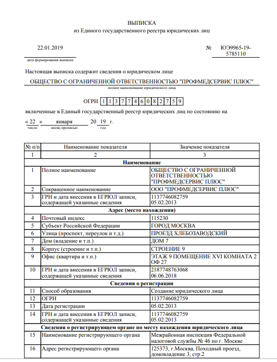 Сокращенное наименование: ООО «ПрофМедСервис Плюс» зарегистрировано 5 февраля 2013 ИНН/КПП: 7724862473/772401001 ОГРН: 1137746082759